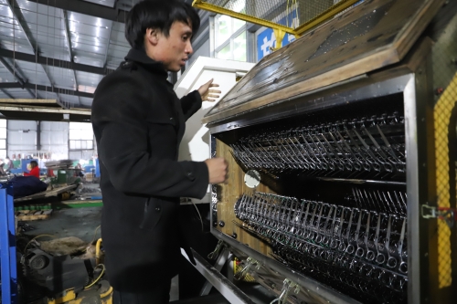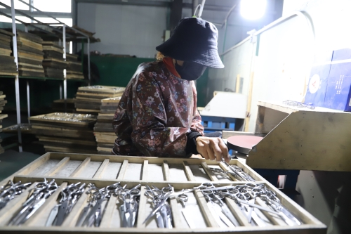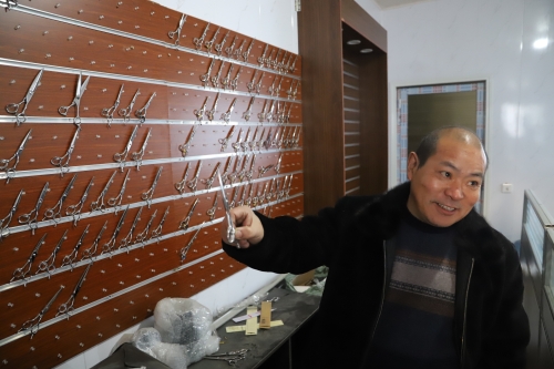 “我也是從小就外出,一直在江蘇蘇州發(fā)展,做刀剪十幾年了。現(xiàn)在家鄉(xiāng)環(huán)境好,回來發(fā)展比在南方還有前途。”今年49歲的陳政治老家是虎崗鄉(xiāng)陳莊村。被虎崗鄉(xiāng)黨委政府的誠意所感動,他很樂意回鄉(xiāng)發(fā)展,因?yàn)榉孔鈨r格低、務(wù)工人員穩(wěn)定,營商環(huán)境又好,所以他帶著自己的外甥楊亞杰和技術(shù)團(tuán)隊回到老家鄲城,還能助力家鄉(xiāng)經(jīng)濟(jì)發(fā)展。陳政治說,他的廠子所生產(chǎn)的東升、jack、亞寶等品牌刀剪全部銷往全國高檔理發(fā)店,產(chǎn)品供不應(yīng)求。像這樣的高檔刀剪生產(chǎn)廠家,在中原地帶極少。剛投產(chǎn)幾個月,他已經(jīng)接到了來自韓國、日本等地的訂單。