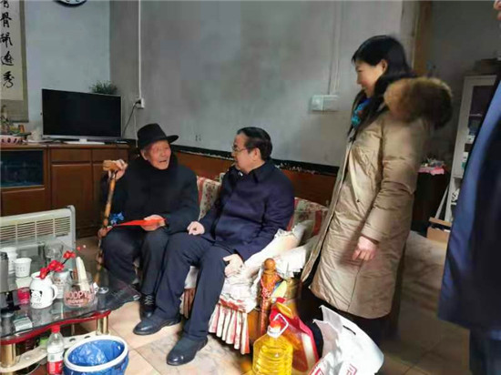 在鹿邑縣中心敬老院娛樂室內(nèi),劉國(guó)連、胡軍與老人一一握手,向老人們?cè)儐柍缘暮貌缓?、住的暖不暖、年貨全不全。同時(shí)叮囑養(yǎng)老院負(fù)責(zé)人要照顧好老人們,讓他們過上一個(gè)歡樂祥和的春節(jié)。