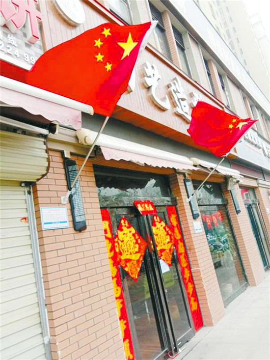 掛國(guó)旗貼門聯(lián) 記者 方珍 攝