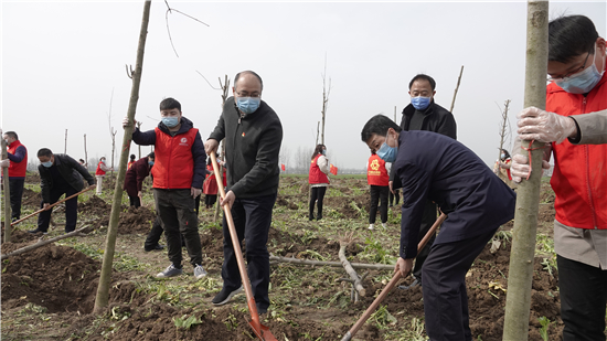 三埋土、兩踩實、一提根……三川大地春潮涌,植樹造林正當時。3月12日上午,鄲城縣四個班子領導崔衛(wèi)國、李建軍、王偉等和廣大志愿者、群眾一起來到皇姑河畔義務植樹現(xiàn)場,揮鍬鏟土,栽植新綠,為鄲城大地再添一片綠意。
