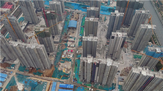 目前,該項目21棟樓已全部主體封頂,負(fù)2樓至屋面層的二次結(jié)構(gòu)施工及屋面工程已經(jīng)全部施工完成,正在進(jìn)行外墻保溫及內(nèi)墻粉刷、室內(nèi)水泥地板鋪設(shè)工作,其中有4棟樓體的外墻保溫工作已完成90%;內(nèi)墻粉刷工作整體已完成60%;地下車庫正在進(jìn)行回填土和墊層施工。3月下旬將開始分批安裝電梯,預(yù)計6月份交房。