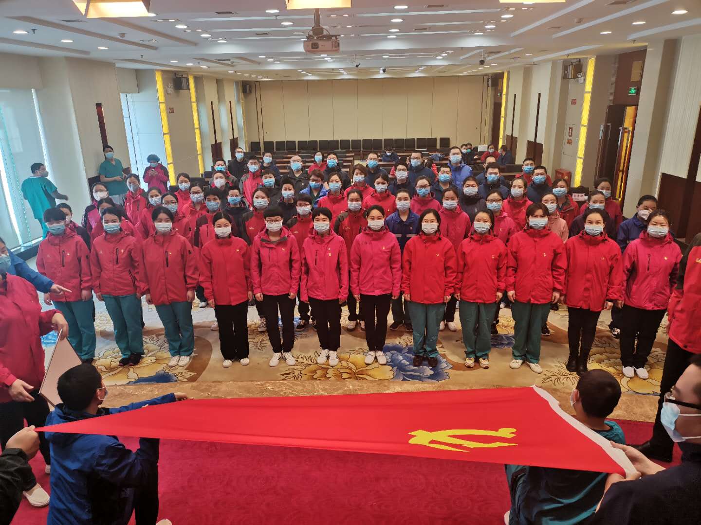 繼3月17日周口援鄂醫(yī)療隊(duì)的周口市中心醫(yī)院2名隊(duì)員火線入黨后,3月19日,周口援鄂醫(yī)療隊(duì)周口市中心醫(yī)院祁文麗、徐貴琴、解玉東、王亞麗、王玉才、王冰清6名隊(duì)員,站在鮮紅的黨旗面前莊嚴(yán)宣誓志愿加入中國(guó)共產(chǎn)黨。