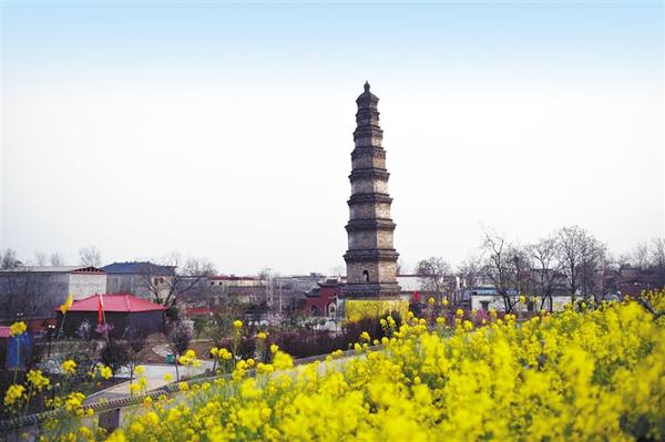 壽圣寺塔 位于商水縣郝崗鄉(xiāng)北常社店村,始建于北宋明道二年(1033年),明嘉靖二十八年進行過大修。1998年9月,壽圣寺塔又進行了一次大修。壽圣寺塔為九級樓閣式磚塔,高41.5米,平面呈正六邊形,塔內砌有盤旋的塔道,可逐級登高遠眺。塔體從底至頂漸收勻稱,成正六棱體錐形,塔頂形似寶葫蘆,給人以挺拔雋秀之感。塔的層檐收放尺寸自然得體,既保護了塔墻免遭雨雪侵蝕,又給予塔體以美的裝飾,看上去既規(guī)整肅穆,又不呆板。