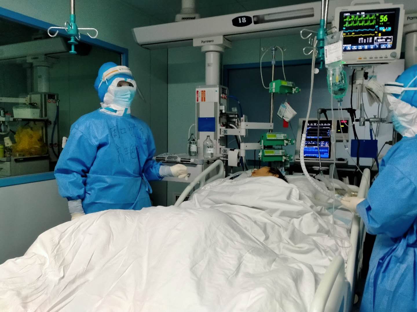 高艷艷她們共分4個小組,輪流24小時值班,連續(xù)24小時的工作,異常繁瑣而艱辛。由于面對的都是危重病人,其中相當一部分患者正在插管中,生命體征、內(nèi)環(huán)境指標隨時會變化,也就隨時有可能調(diào)整治療方案。每天查房和檢測循環(huán)指標都不可能定時進行,而是隨時關注,為此,全體醫(yī)護人員始終處于高度緊張的狀態(tài),不敢有絲毫的疏忽大意。