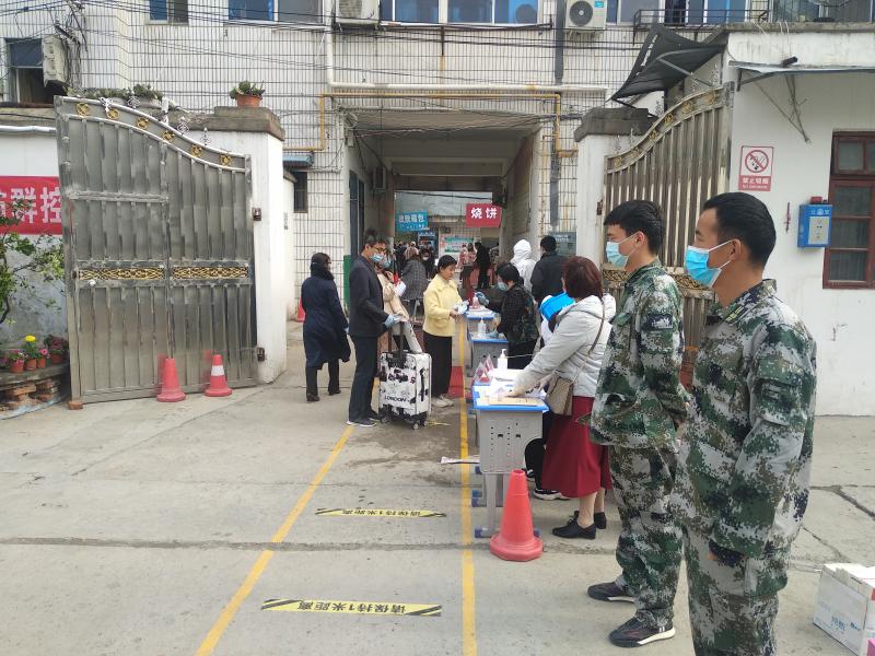 “同學們,請排好隊,與前面的人保持1米以上的距離?!?月20日上午,在鄲城縣華宇中學,來自洺南街道基干民兵應急分隊的民兵們正在現(xiàn)場維護秩序,幫助該校做好九年級學生復學入校防疫工作。