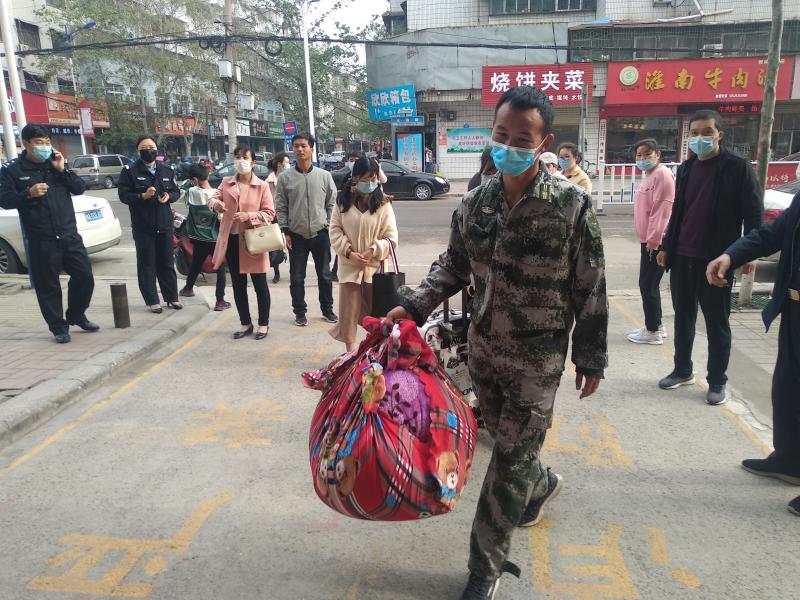 行動中,基干民兵按照應急預案要求,全部提前到崗到位,在學校大門前及周邊路口巡邏執(zhí)勤,指揮疏導車輛有序通行,避免交通堵塞,造成人員聚焦;積極協(xié)助學校進行體溫檢測、物品消毒、人員登記等工作;引導學校門口家長、學生不聚集、不扎堆,保障師生安全有序入校。為避免人群過度密集,學生家長一律禁止進入校園,而學生開學時攜帶的行李物品較多,基干民兵們主動當起了“搬運工”,幫助學生們扛運大包小包的書籍、被褥和行李,熱情的服務受到很多學生的點贊。