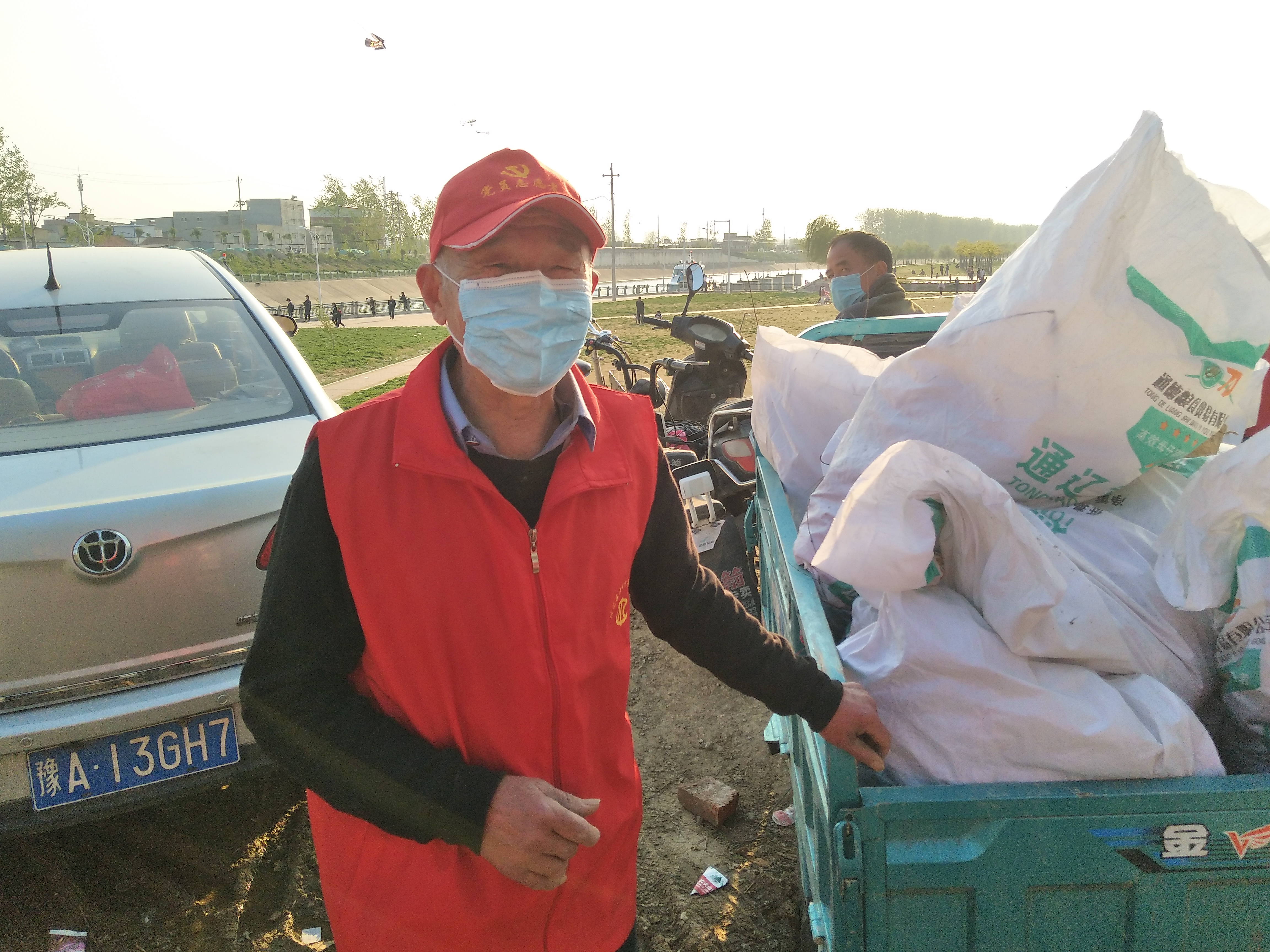 “你看那名大爺,我們這兒年紀(jì)最大的,68了,老黨員,我還沒分工呢就先下去撿垃圾了。”4月13日下午,大閘上游中島,周口慈孝文化促進(jìn)會(huì)會(huì)長孫彩云剛見到記者就介紹了起來。