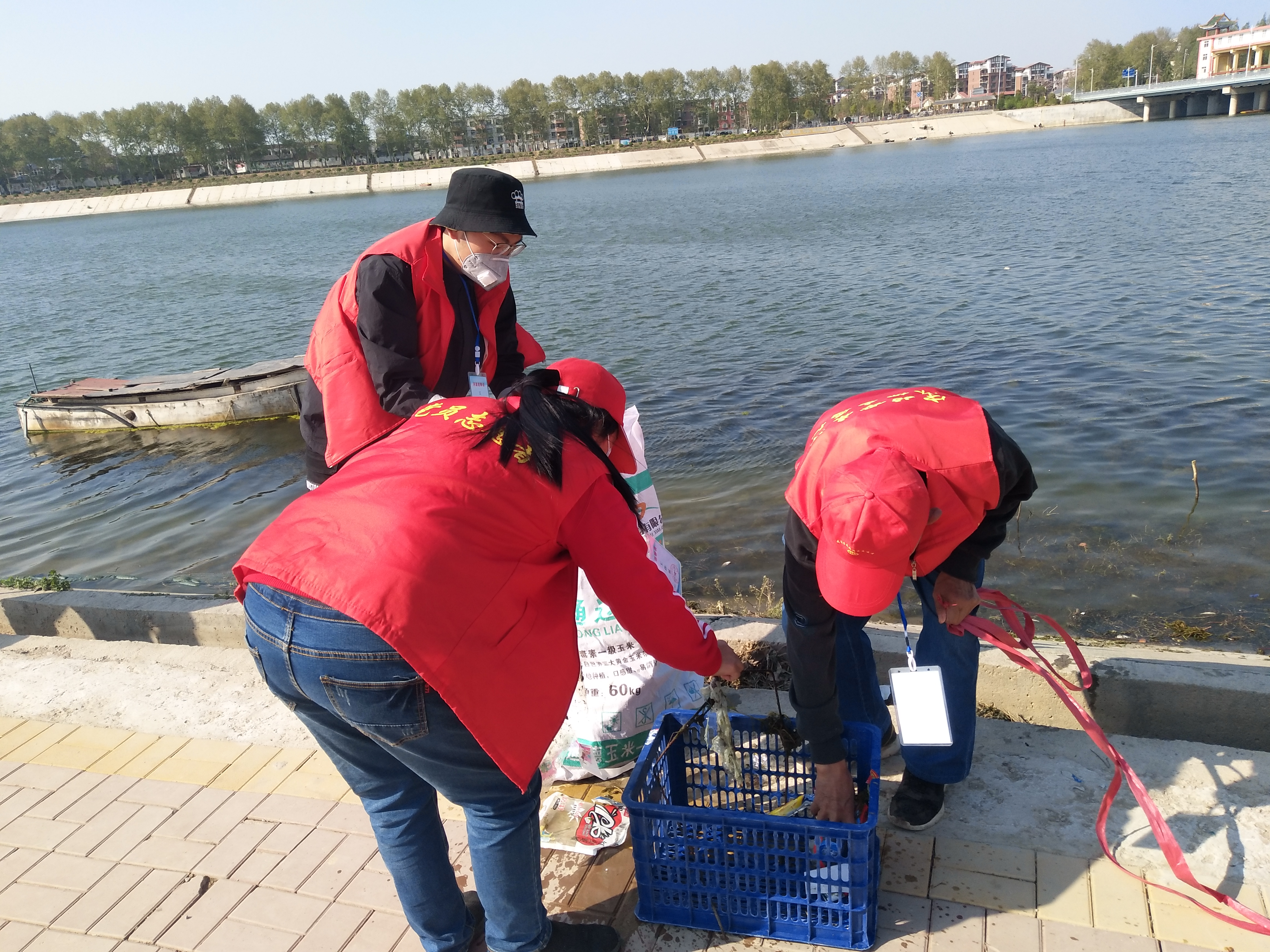 留下若干人員做問卷調(diào)查,孫彩云開始安排護(hù)河人員。誰拿鐵耙,誰拿網(wǎng)兜,誰拿垃圾箱,誰負(fù)責(zé)運(yùn)垃圾袋……孫彩云一一分工后,拿起大喇叭給志愿者團(tuán)隊(duì)提示注意事項(xiàng):“只撿白色垃圾呀,不要鉤水草,這個(gè)季節(jié)魚在上面產(chǎn)卵呢!”