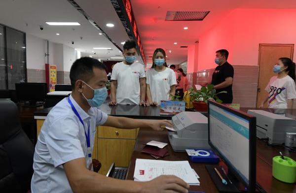 “你就是因為疫情防控推遲婚禮的那個警察吧!”5月20日上午,在鹿邑縣民政局婚姻登記大廳,工作人員看了身份證件后立即認出了他們,專門為他們開通了“綠色通道”;同事們一起在執(zhí)勤的崗亭布置了喜氣洋洋的“云婚禮”場地,與他們一起分享幸福的喜悅。