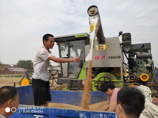 近日,我市小麥相繼進(jìn)入成熟期,田地里遍野金黃,滾滾麥浪中收割機(jī)來(lái)回穿梭,演奏出一首豐收的歡歌。24日上午,沈丘縣李老莊鄉(xiāng)部分麥田開(kāi)始收割,飽滿的麥子從收割機(jī)中排出,農(nóng)民的臉上綻放著豐收的喜悅。據(jù)介紹,隨著我市小麥逐漸成熟,小麥大面積收割將很快到來(lái)。 朱東一 攝