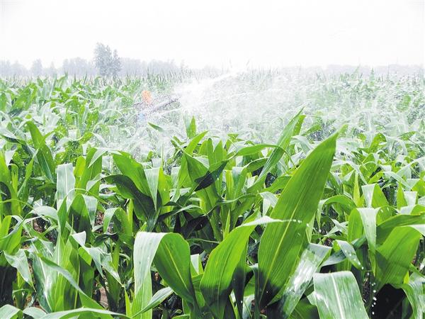 ② 6月4日,沈丘縣周營鎮(zhèn)黃孟營村農(nóng)民在用小型自動噴機械噴灌春玉米。 謝辛凌 攝