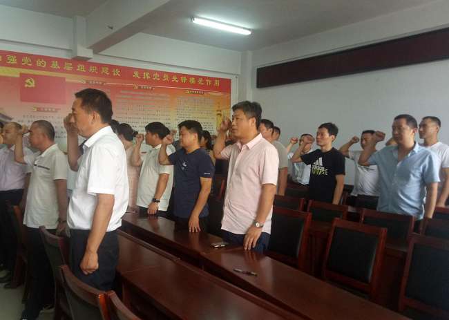 面對(duì)鮮紅的黨旗,在該局支部書記郭勇同志的領(lǐng)誓下,大家舉起右手莊嚴(yán)的向黨旗宣誓,重溫了入黨誓詞。