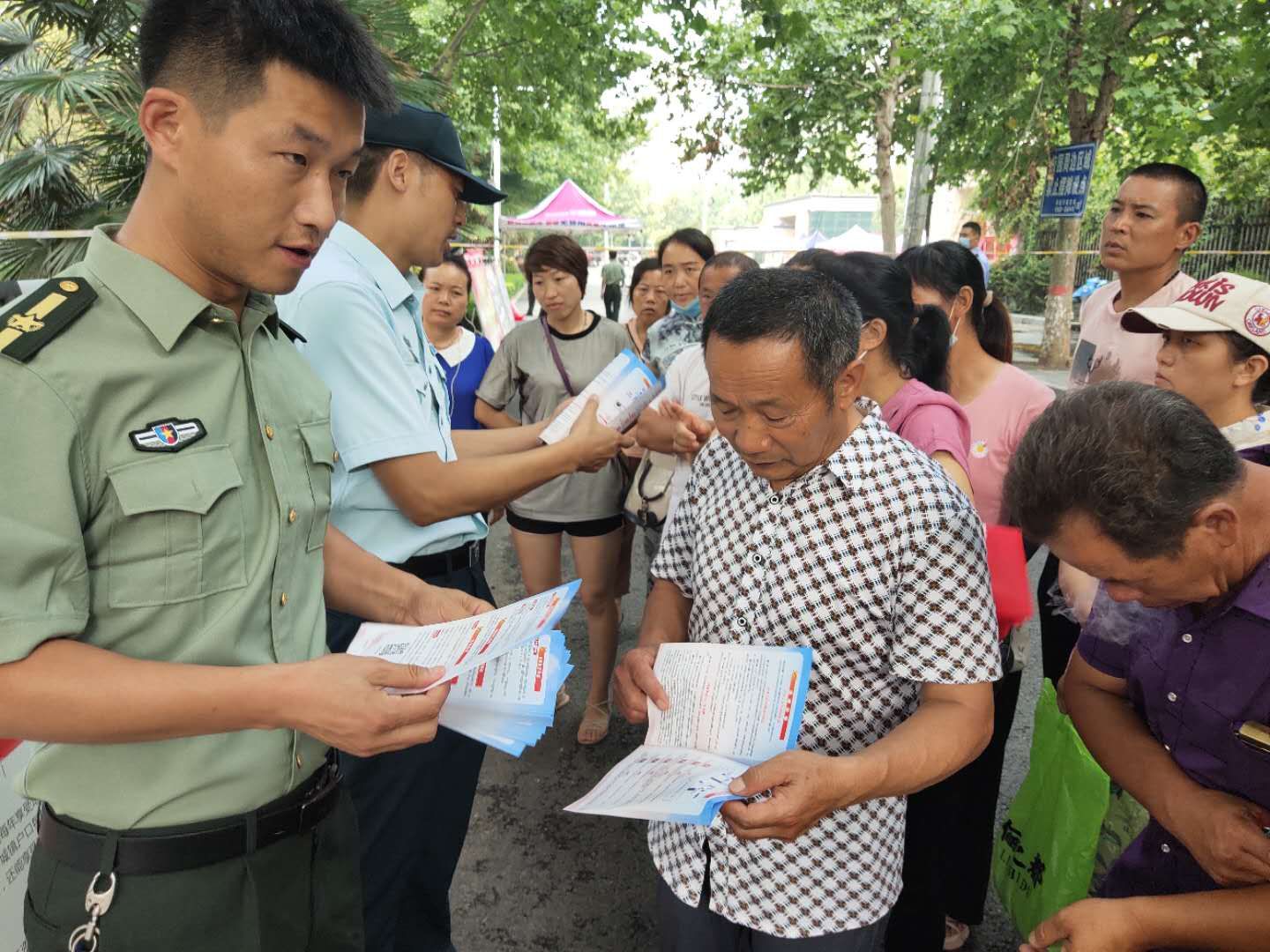 為強化全民依法履行兵役義務(wù)觀念,激發(fā)廣大適齡青年特別是高學(xué)歷青年參軍入伍熱情,7月7日至8日,項城市人武部組織機關(guān)所有人員和21個鎮(zhèn)(街道)辦事處武裝部長等36人,深入各考點設(shè)立征兵政策咨詢點,懸掛宣傳標(biāo)語、擺放宣傳版面,開展以助力高考為目的的大學(xué)生征兵宣傳活動。為不影響考場秩序避免打擾高考,7月7日全天,參加宣傳的工作人員悄悄走進家長等待區(qū),現(xiàn)場向廣大考生家長以及過往群眾發(fā)放《應(yīng)征入伍明白卡》、《大學(xué)生入伍優(yōu)惠政策》等征兵宣傳資料,并接受咨詢。7月8日下午5點30分后,為期兩天的高考結(jié)束后考生放松的走出考場大門之際,所有人員同時守在大門外,一邊給考生發(fā)放宣傳資料,一邊接受學(xué)生咨詢和報名,給他們講解大學(xué)生入伍政策、法規(guī),介紹“應(yīng)征入伍的政治、文化、身體和年齡條件”、“報名程序”、“就業(yè)安置”等相關(guān)內(nèi)容,鼓勵高中畢業(yè)生帶著成績和文化知識投身軍營、報效祖國。