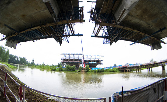 周口北環(huán)跨賈魯河大橋是我市在建重點工程,全長904米,其中主橋總長286米,共3跨,采用懸澆法施工。7月16日中午,記者在工地看到,經(jīng)過一年多的施工,工程完成80%左右,為了保障工期和質(zhì)量,工人們冒著酷暑,在跨河的兩列橋墩上,忙碌著澆鑄施工,隨著澆鑄橋體的延伸,預(yù)計年底橋體完成合攏。