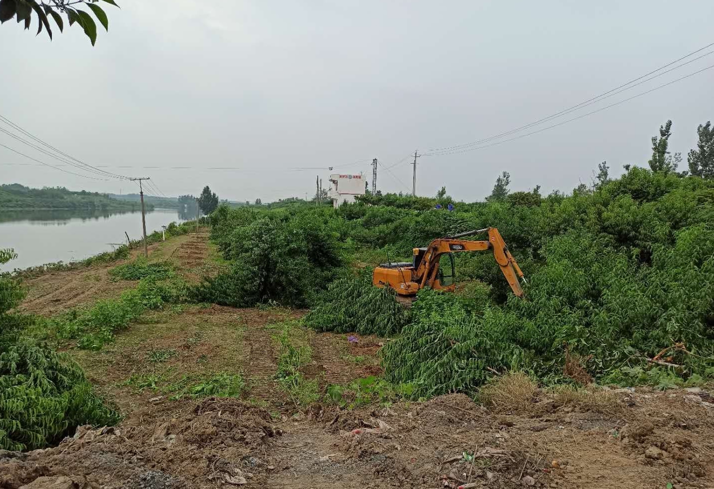 同時,該縣以《水法》《防洪法》《河道管理?xiàng)l例》等法律法規(guī),以及中共中央辦公廳、國務(wù)院辦公廳《關(guān)于全面推行河長制的意見》《河南省全面推行河長制工作方案》《河南省總河長令(第2號)》《河南省持續(xù)開展河湖“清四亂”行動方案》等重要文件為依據(jù),對河道管理范圍內(nèi)“四亂”問題進(jìn)行依法清理整治。潁河黃橋閘上下游灘地存在阻水林木,屬“亂占”行為。黃橋鄉(xiāng)政府與河道管理部門實(shí)地查看,制定清理方案,劃出清理范圍線,按照潁河防洪要求和管理實(shí)際情況,對潁河保證水位線以下高桿作物,樹木全部清理,確保防洪安全。目前,按照清理范圍,潁河黃橋管理段日出動挖掘機(jī)械四臺,已清理桃樹170棵、楊樹40棵、梧桐樹110棵、雜樹7畝,清理河道長1200米。