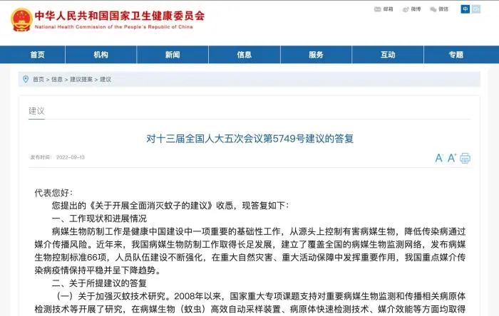 近日,一則全國人大代表提出全面消滅蚊子的建議得到了國家衛(wèi)健委的答復(fù)。很快,各種爭議也隨之而來。有人認(rèn)為,蚊子是自然界和生態(tài)系統(tǒng)的一員,存在有其合理性;也有人認(rèn)為,蚊子是害蟲,是疾病傳播的元兇之一,應(yīng)該“除之而后快”。