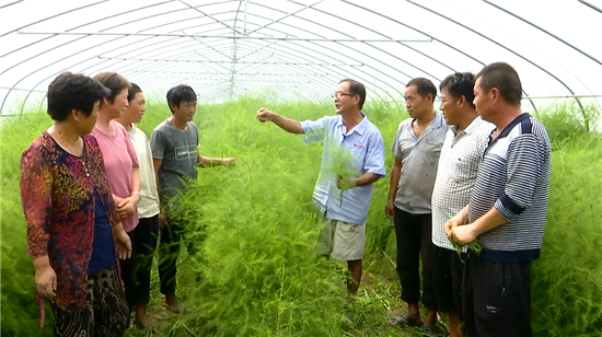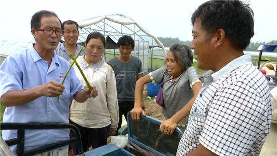 當(dāng)天,一場(chǎng)技術(shù)講座正在如期舉行,當(dāng)?shù)赜忻奶J筍種植“土專家”程殿明說(shuō):“咱這蘆筍種植,要以噴灑生物藥為主,在有機(jī)種植上,千萬(wàn)不能用有機(jī)磷類的。大棚要想多掙錢,眼下管理是關(guān)鍵,長(zhǎng)勢(shì)好了,進(jìn)入冬季,一個(gè)棚采摘就能掙三到五千塊錢。”