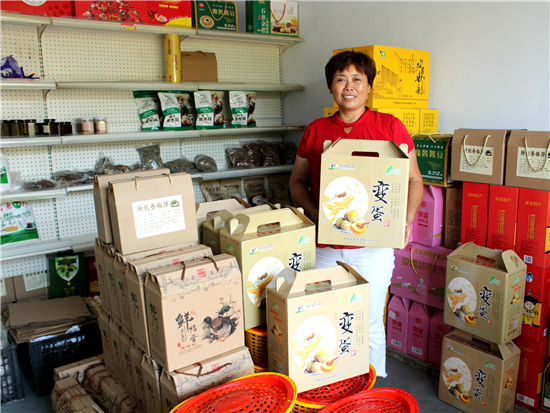 幾年前,孔粉蓮曾干過建材生意,賣過油漆、涂料等,但最讓她得心應(yīng)手的還是經(jīng)營當?shù)氐霓r(nóng)特產(chǎn)品。她在村里開了一家小門店,代銷當?shù)氐暮睖稀⑹ッ?、食用菌、紅薯粉條等,顧客贏門,生意很是紅火。