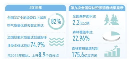 5年砥礪前行,污染防治攻堅(jiān)戰(zhàn)全面推進(jìn)。截至2019年底,“十三五”規(guī)劃綱要確定的生態(tài)環(huán)境領(lǐng)域9項(xiàng)約束性指標(biāo),有8項(xiàng)已提前完成。天藍(lán)水凈地綠的美麗中國(guó)正向我們走來(lái)。