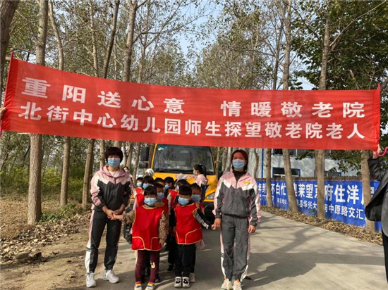 東夏亭鎮(zhèn)北街中心幼兒園園長(zhǎng)袁百成說(shuō):“重陽(yáng)節(jié)也是老人節(jié)。帶領(lǐng)小朋友們到敬老院開展慰問(wèn)老人活動(dòng),就是要從小培養(yǎng)他們尊老、愛(ài)老、敬老的情懷,發(fā)揚(yáng)尊老、愛(ài)老、敬老的優(yōu)良傳統(tǒng)。也讓敬老院的孤寡老人真正感受到來(lái)自大家庭的溫暖?!?/p>