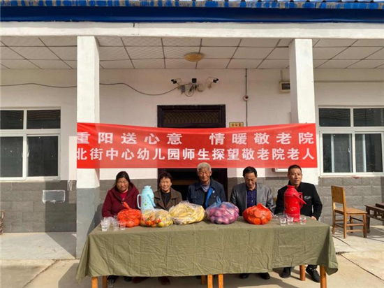 在九九重陽(yáng)節(jié)來(lái)臨之際,東夏亭鎮(zhèn)北街中心幼兒園師生到鎮(zhèn)敬老院看望慰問(wèn)老人。為敬老院的老人們帶來(lái)水果、餅干等慰問(wèn)品,也給老人們帶來(lái)了心靈上的慰藉。