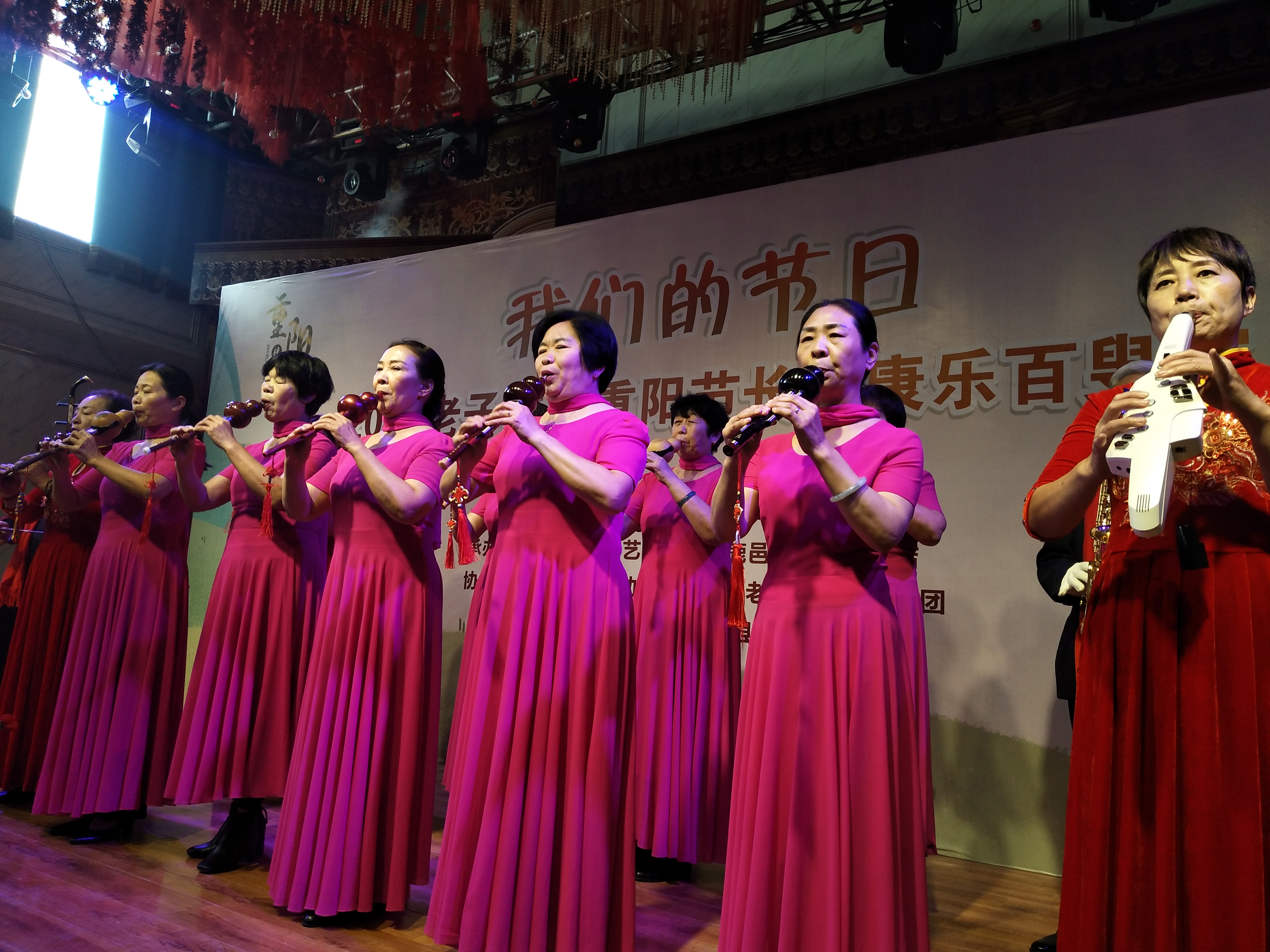 鹿邑縣舉辦的“我們的節(jié)日——2020老子故里長安康樂百叟宴”于上午11時開始,來自縣曲藝家協(xié)會、縣詩詞協(xié)會、縣書畫協(xié)會的老藝術(shù)家們進(jìn)行才藝展示,首先是縣老干部大學(xué)葫蘆絲隊表演了葫蘆絲合奏《花好月圓》《九月九的酒》,縣詩詞協(xié)會的翟明、張明山、林建華分別放聲朗誦了《重陽禮贊》《我愛仙鄉(xiāng)的土地》《歡聚在長安》,而縣曲藝家協(xié)會的史云龍表演的墜子《王華買爹》更是別有風(fēng)情……