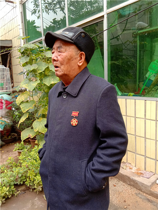 快到王景文家時(shí),記者與他取得了聯(lián)系,沒(méi)想到他竟到路口來(lái)迎記者,看到他硬朗的身板和健康的身體,聽他說(shuō)話聲音洪亮、底氣十足,記者還是很欣慰的,畢竟經(jīng)歷了70年的風(fēng)雨洗禮,還能行走自如、聲如洪鐘,的確是寶刀不老。被他迎進(jìn)家,其老伴滿頭銀發(fā),喜瞇瞇地讓記者進(jìn)屋,王老先生去里屋找出了一枚抗美援朝紀(jì)念章,并說(shuō)抗美援朝和平紀(jì)念章等物品都放丟了,找不到了,有些遺憾。記者就開門見(jiàn)山地說(shuō)要聽他講講參加抗美援朝的故事,他不好意思地笑了:“講不好,年齡大了,記性不好,有好多事都記不清了……”當(dāng)問(wèn)起他老家是哪里時(shí),王老先生還是打開了話匣子。1934年,他出生在淮陽(yáng)縣劉振屯鄉(xiāng)耿樓大隊(duì)李樓村,由于家境貧寒,他從小就跟隨家人一路逃荒要飯來(lái)到了扶溝,但日子還是艱難,為了能活命,父母無(wú)奈把他送給了扶溝縣城一戶人家,從此他就成了這戶人家的孩子,并于1951年5月結(jié)婚??山Y(jié)婚沒(méi)幾個(gè)月,縣里就開始征兵了。當(dāng)兵離家,要丟下妻子,更何況妻子已有孕在身,他真舍不得;保家衛(wèi)國(guó),是義務(wù)是責(zé)任是擔(dān)當(dāng),他責(zé)無(wú)旁貸。家與國(guó),他毅然選擇去當(dāng)兵。與新婚燕爾的妻子依依惜別,他踏上了行軍的征程。那時(shí)可沒(méi)有車接送,去往目的地,全靠?jī)蓷l腿,行軍與訓(xùn)練的苦與累難以想象。問(wèn)他不害怕當(dāng)兵打仗嗎?他回答:“不怕!”語(yǔ)氣堅(jiān)定而有力。生活的磨難讓他對(duì)安穩(wěn)的生活有一種渴望,他明白戰(zhàn)爭(zhēng)會(huì)讓國(guó)家陷入混亂不堪的局面,老百姓的生活會(huì)更加艱難,為了祖國(guó)的和平安寧和兄弟姐妹的幸福,他愿意去當(dāng)兵打仗。保家衛(wèi)國(guó)的種子早已種在了他的心里。
