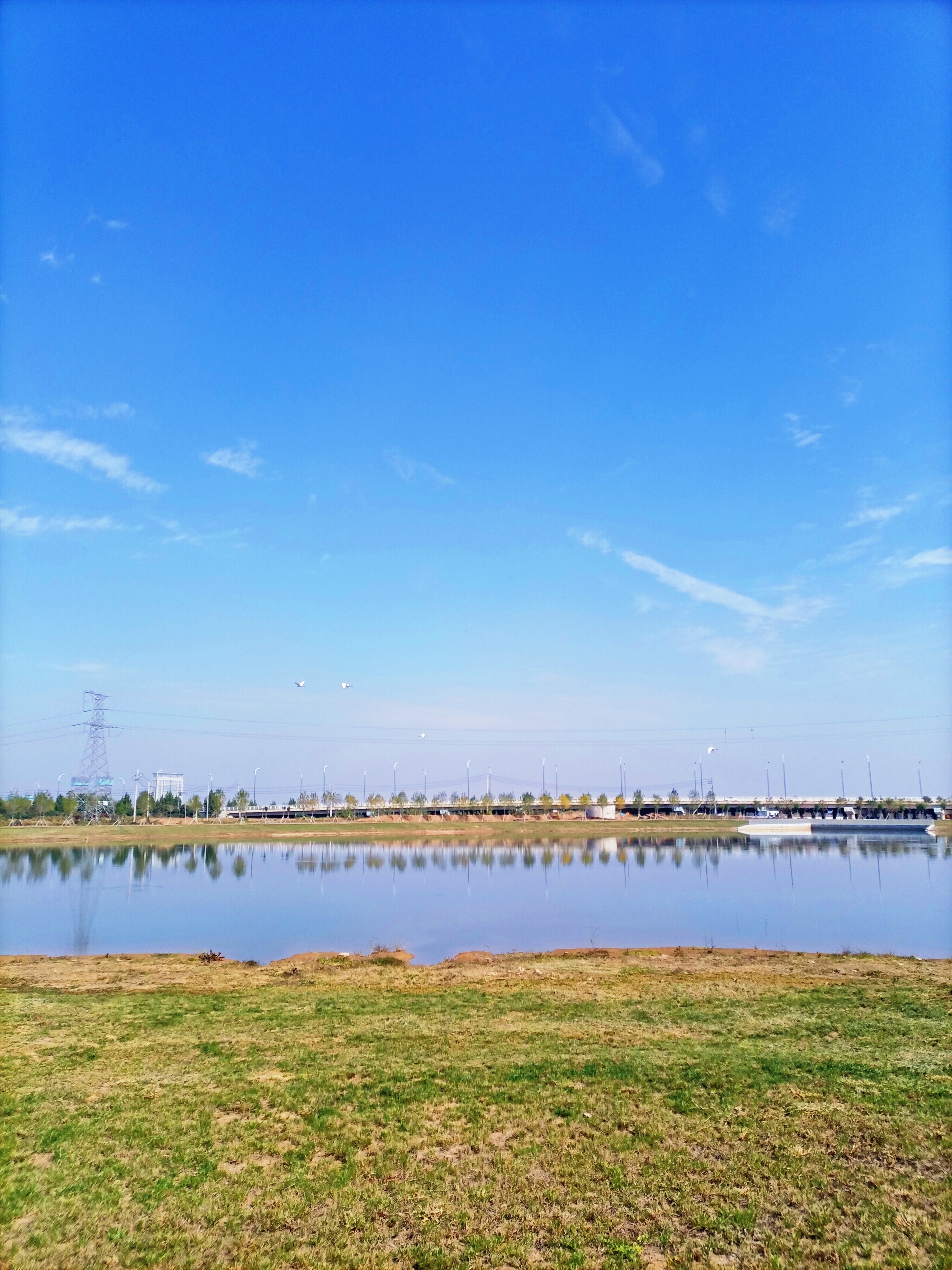 晚秋時節(jié),周口伏羲湖濕地公園風(fēng)景宜人,舉目望去,波光瀲滟的伏羲湖水面上倒映著藍天、白云、飛鳥,“秋水共長天一色”的絕美畫卷讓人心醉。