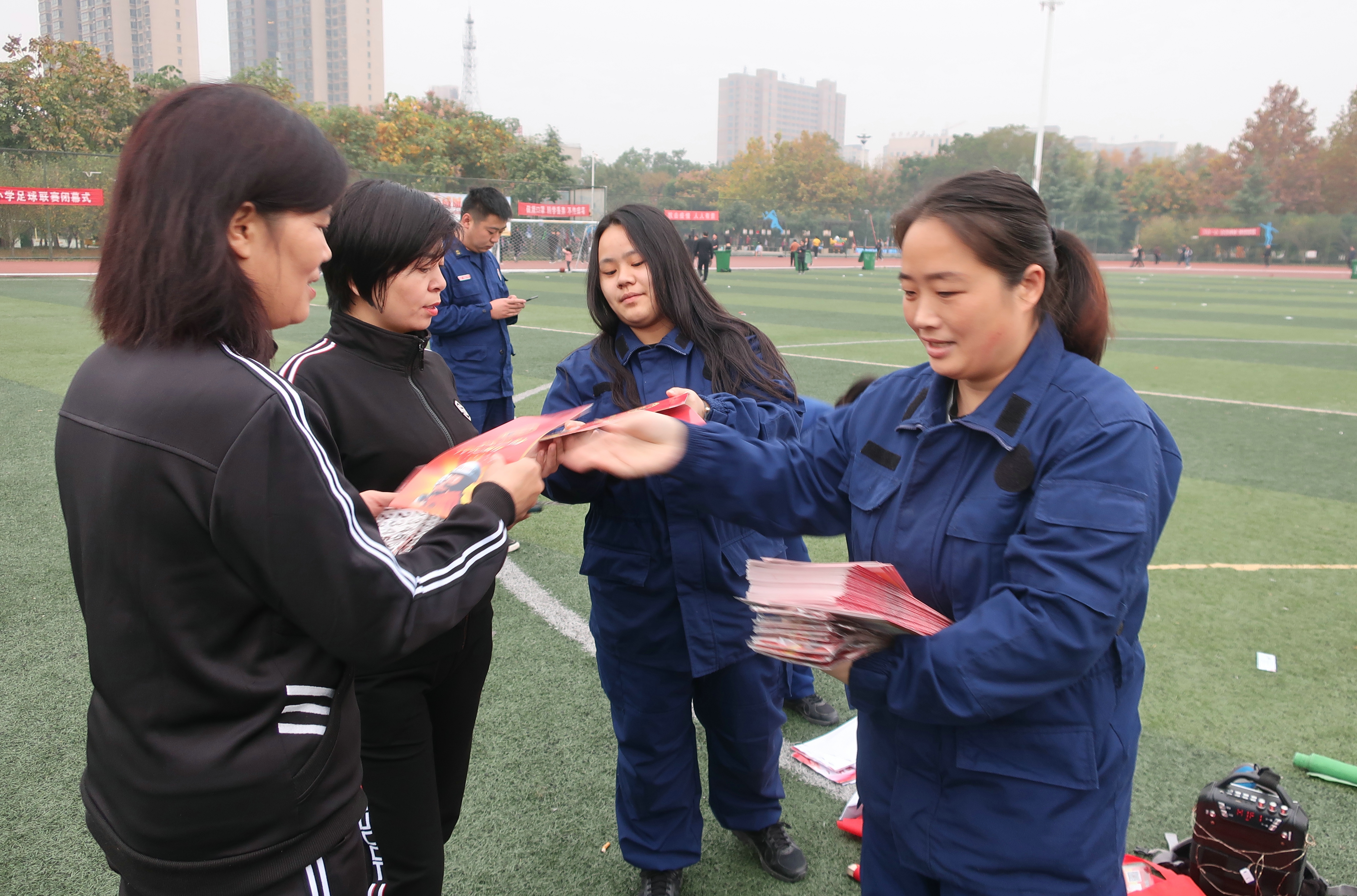 活動(dòng)中,志愿者們身穿粘貼統(tǒng)一標(biāo)識(shí)的服裝,一邊發(fā)放宣傳資料和宣傳品,一邊普及科學(xué)健身方法,講解家庭防火知識(shí),介紹消防法律法規(guī),以及如何正確使用滅火器材、發(fā)現(xiàn)火情應(yīng)如何正確的報(bào)警和撲滅初期火災(zāi)等消防安全知識(shí)。同時(shí)提醒廣大群眾定期開展自查自糾工作,維護(hù)自己和家人的生命財(cái)產(chǎn)安全?,F(xiàn)場(chǎng)的一位群眾激動(dòng)地說:“通過這次的消防宣傳,大家對(duì)如何應(yīng)對(duì)日常消防危險(xiǎn)有了一定的了解,增強(qiáng)了大家的安全意識(shí)和健康意識(shí),真心謝謝你們!”