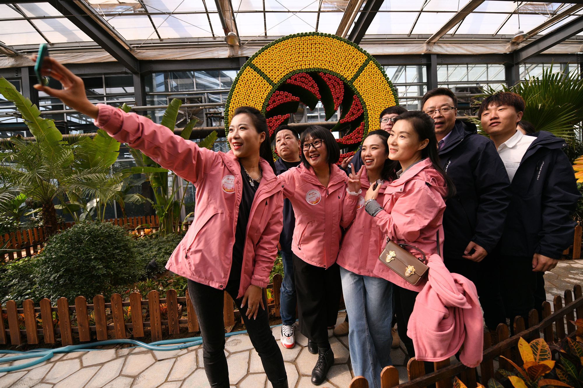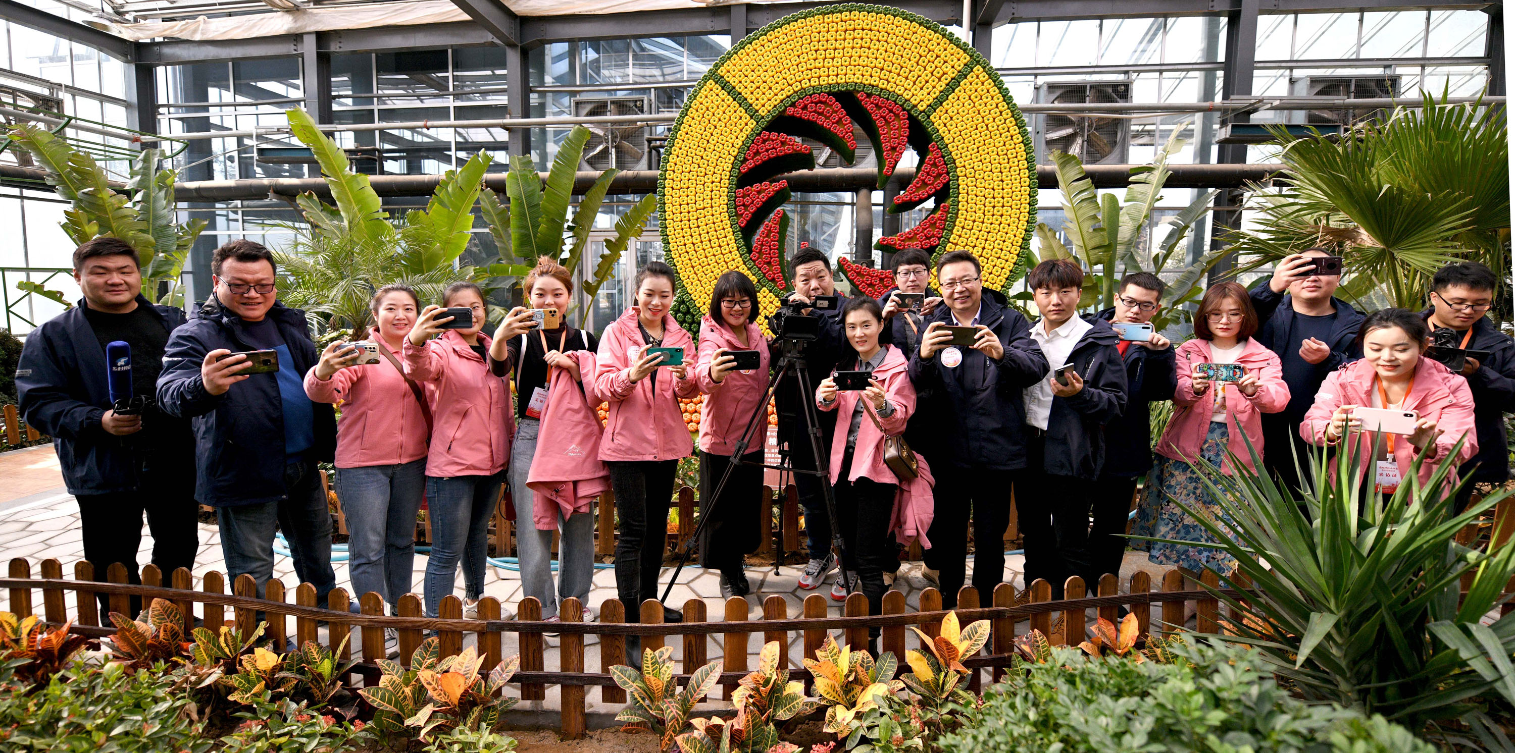 在種植蔬菜果樹的建業(yè)科技館采訪之余留個(gè)影