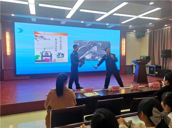 課堂上, 公安民警用鮮活的案例剖析青少年違法犯罪的心理軌跡,讓同學們做遵紀守法好學生。民警們解讀了社會主義核心價值觀基本內(nèi)涵和具體要求,教育同學們要愛黨愛國愛校園愛學習,做人誠信,做事友善。民警們還教會學生們?nèi)绾巫R別毒品,認識毒品危害,做到拒絕、遠離毒品,爭當禁毒小小宣傳員。對如何防范被刀棍傷害,民警們演示了書包板凳防護法。③5