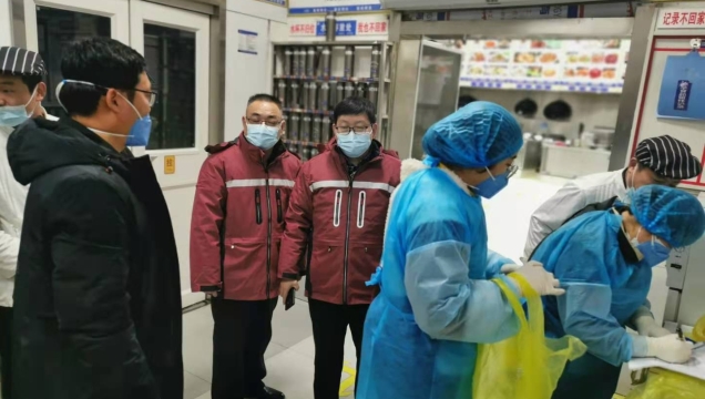 為助力第一屆周商大會圓滿成功,市衛(wèi)生健康委抽調(diào)近百名調(diào)精兵強將組成衛(wèi)生保障專班開展衛(wèi)勤保障工作。圖為工作人員在市委黨校迎賓館和體育賓館餐廳對后廚人員做核酸檢測及開展冷鏈食品消毒。