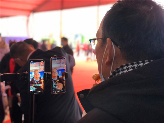 28日早上7時許,周口網(wǎng)紅俱樂部的網(wǎng)紅們和工作人員就開始為今天的直播做準備,早早把直播設(shè)備搬到現(xiàn)場,進行調(diào)試。10時左右,周商產(chǎn)品展示展覽活動現(xiàn)場人頭攢動,熱鬧非凡,來自周口本地的9位網(wǎng)紅們陸續(xù)架好手機直播設(shè)備,打開補光燈,開始直播?,F(xiàn)場的9位網(wǎng)紅各有特色,有打扮時髦的美女主播,有歌聲出眾的中年大叔,年齡最大的網(wǎng)紅是今年65歲的鹿邑大爺。網(wǎng)紅們一手拿著周口的蜂蜜、空心掛面、麻花、粉條、醬豆等土特產(chǎn),一邊對著手機屏幕里的粉絲熱情地展示和介紹起來,有的還直接進行現(xiàn)場吃播,不時與網(wǎng)友進行唱歌、聊天互動,吸引了不少行人前來觀看?!霸瓉碓诙兑羯峡催^網(wǎng)紅帶貨,但沒見過真人, 今天終于見到真實的網(wǎng)紅了!感覺很有意思!”前來觀展的市民劉女士說。