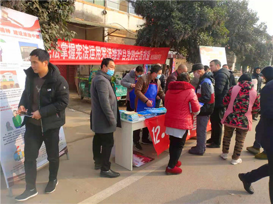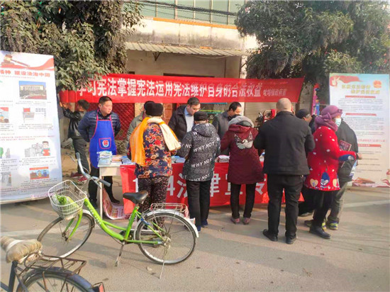 12月4日,西華縣址坊鎮(zhèn)司法所聯(lián)合鎮(zhèn)安監(jiān)辦鎮(zhèn)綜治辦、鎮(zhèn)婦聯(lián)、鎮(zhèn)軍人服務(wù)部、鎮(zhèn)派出所在鎮(zhèn)政府大門西50米路北設(shè)立咨詢臺(tái),開展“12.4”憲法宣傳日普法活動(dòng),為過往行人送上豐富的法制教育大餐。