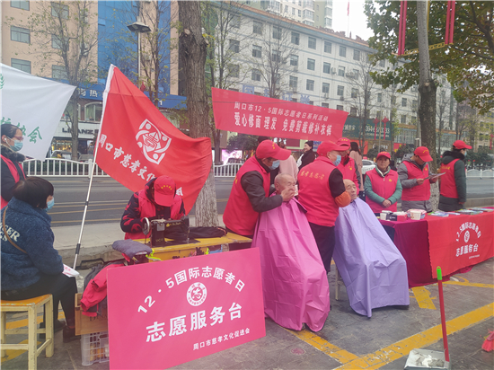 12月6日下午,周口市慈孝文化促進會、周口環(huán)境保護協會的志愿者來到周口中心城區(qū)五一文化廣場開展以愛心剪發(fā)、免費剪裁、修補衣褲為主要內容的便民志愿服務活動。