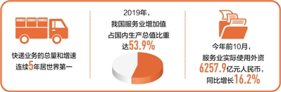 快遞業(yè)務(wù)的總量和增速連續(xù)5年居世界第一,電子商務(wù)和移動(dòng)支付交易額居世界第一……“十三五”以來(lái),我國(guó)服務(wù)業(yè)規(guī)模日益壯大,質(zhì)量效益大幅提升,新業(yè)態(tài)新模式快速涌現(xiàn)。