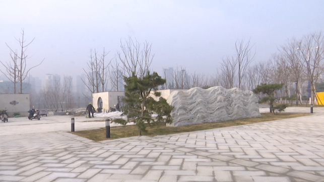 1月4日上午,記者在現(xiàn)場看到,映入眼簾的是一塊巨大的景觀石,造型如山峰,氣勢巍峨,左右兩側(cè)擺放黑松,使得整個游園風(fēng)格簡潔,自然爽朗,歷史元素厚重,在功能布局上,還配建了健身小廣場、休憩廊架等,提升了游園的綜合服務(wù)功能,成為周邊市民游玩鍛煉的好去處。