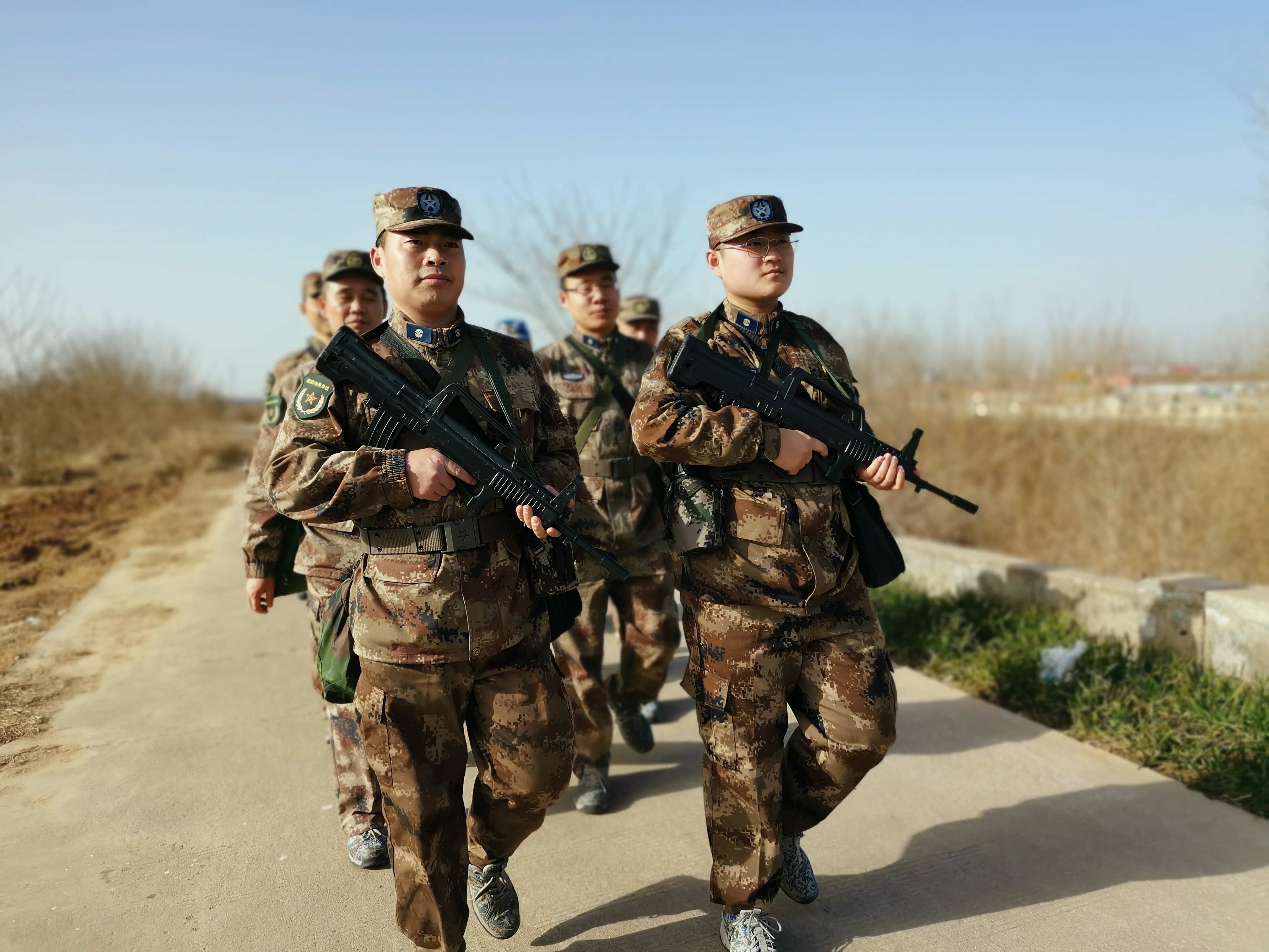 冬日暖陽里,沙潁河畔,一群迷彩身影行走在蜿蜒曲折的沙河堤上。陽光下,“河南省周口軍分區(qū)”的旗幟迎風飄揚。