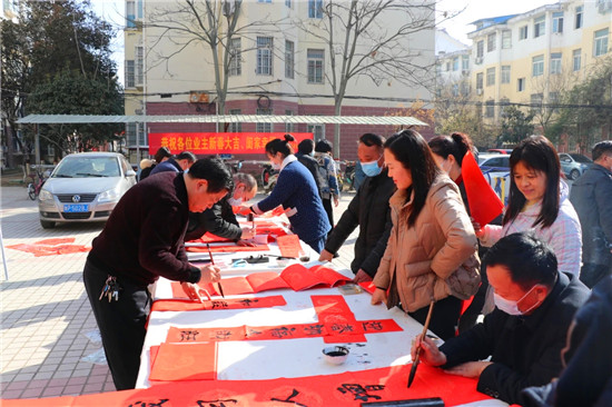 “春節(jié)前夕,縣書法家協(xié)會為群眾傾心打造文化盛宴,組織若干場義寫春聯(lián)進社區(qū)活動,旨在弘揚祖國傳統(tǒng)文化,豐富群眾文化生活?!甭挂乜h書法家協(xié)會主席韓文甫說。
