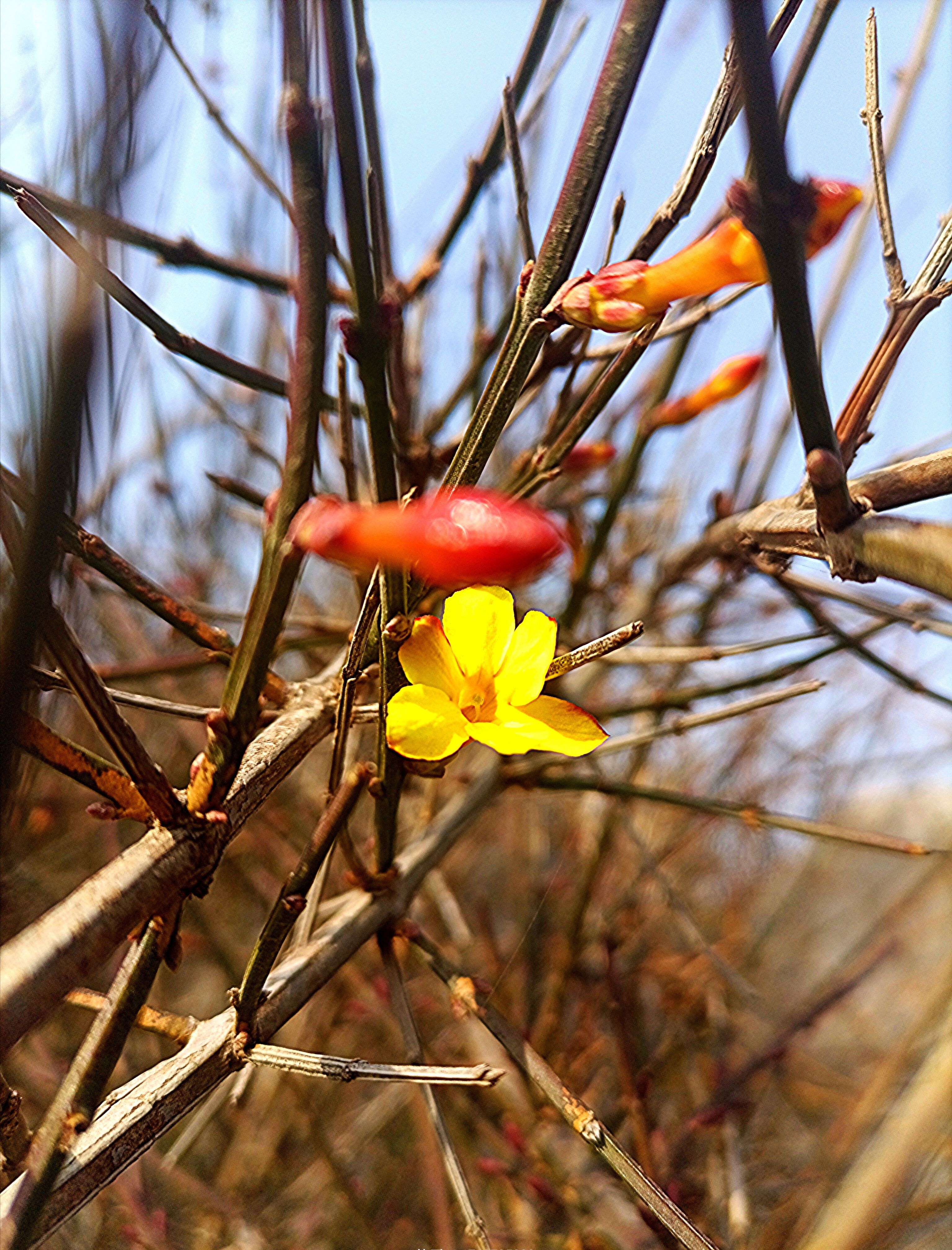 2月3日,是立春時(shí)節(jié)。接連幾日,我市天氣晴朗,氣溫漸暖,周口公園的迎春花枝條已經(jīng)掛滿了花蕾,偶有幾朵“性急”的花兒已經(jīng)綻放,迫不及待地迎接春天的到來(lái),嫩黃的花瓣在陽(yáng)光的照射下,閃耀出金子般的光芒,令人見(jiàn)之心喜。