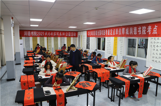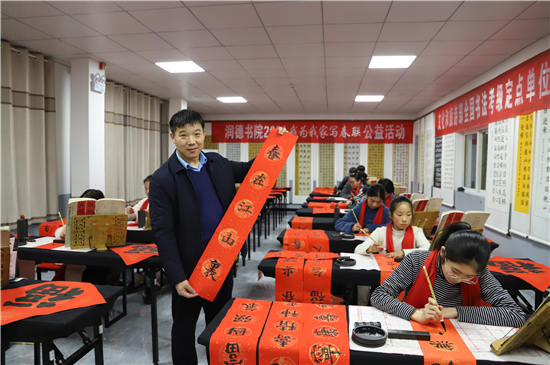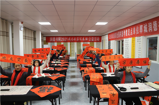 春節(jié)前夕,鄲城縣的書(shū)法家和書(shū)法愛(ài)好者們便更顯活躍,他們進(jìn)機(jī)關(guān)、進(jìn)企業(yè)、進(jìn)社區(qū)、進(jìn)學(xué)校、進(jìn)農(nóng)村,把富有中國(guó)特色的新春祝福,富含中國(guó)傳統(tǒng)文化的春聯(lián),送到千家萬(wàn)戶。