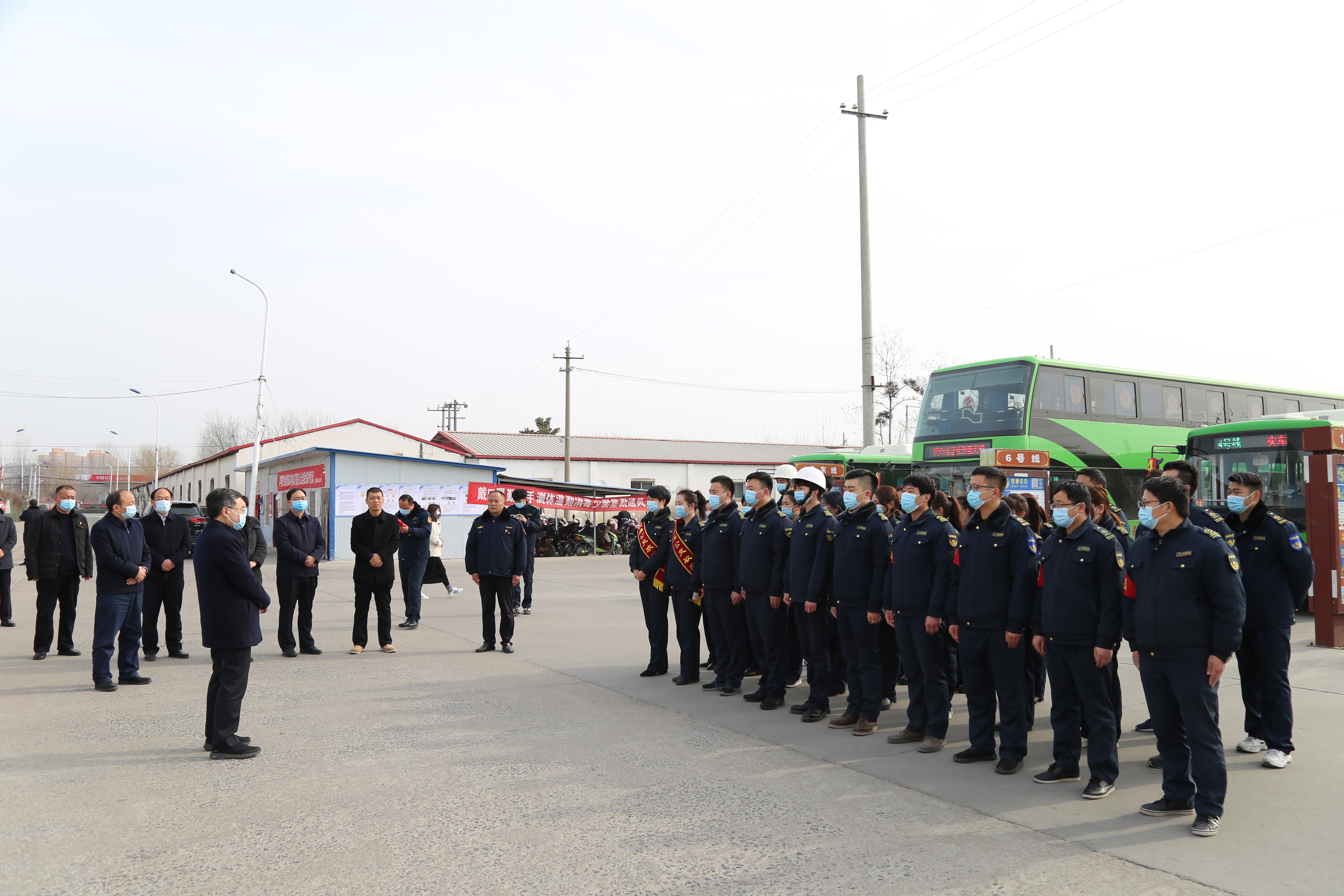 在縣公交公司,皇甫立新、劉國(guó)慶代表縣四個(gè)班子向堅(jiān)守在一線的干部職工和公交司機(jī)致以節(jié)日的問候,對(duì)他們長(zhǎng)期以來為我縣交通事業(yè)做出的貢獻(xiàn)表示感謝,并祝大家新春快樂,闔家歡樂。在認(rèn)真聽取相關(guān)負(fù)責(zé)人關(guān)于春節(jié)期間車輛運(yùn)營(yíng)和疫情防控等工作的匯報(bào)后,皇甫立新說,眼下,隨著春節(jié)臨近,人流量劇增,交通壓力和疫情防控壓力徒增,縣公交公司要繼續(xù)落實(shí)春節(jié)期間城區(qū)公交車免費(fèi)乘坐惠民政策,在嚴(yán)格落實(shí)疫情防控措施的基礎(chǔ)上,根據(jù)春節(jié)期間人流特點(diǎn),靈活調(diào)度車輛,合理安排各公交路線的車輛、臺(tái)數(shù)、營(yíng)運(yùn)車次,統(tǒng)籌做好高鐵站、火車站、汽車站等運(yùn)輸點(diǎn)的接續(xù)接駁工作,優(yōu)化營(yíng)運(yùn)時(shí)間和發(fā)車頻次,尤其是高鐵夜班車的統(tǒng)籌安排,確保乘客安全到家,不滯留一位乘客。同時(shí)希望堅(jiān)守崗位的公交職工要繼續(xù)提供優(yōu)質(zhì)服務(wù),文明安全駕駛,為全縣人民安全出行提供方便、搞好服務(wù)?;矢α⑿逻€叮囑公交公司負(fù)責(zé)人要合理安排好職工的工作和生活,為廣大一線工作人員安心工作提供堅(jiān)實(shí)的后勤保障,讓他們更加舒心愉快地服務(wù)廣大群眾。