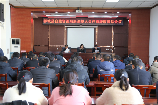 2月19日,鄲城縣自然資源局對新調(diào)整人員進行任前廉政談話。會議由局辦公室主任潘梅主持。局黨組成員、副局長朱云英出席會議并講話。局機關(guān)各股室及各自然資源所中層干部參加會議。