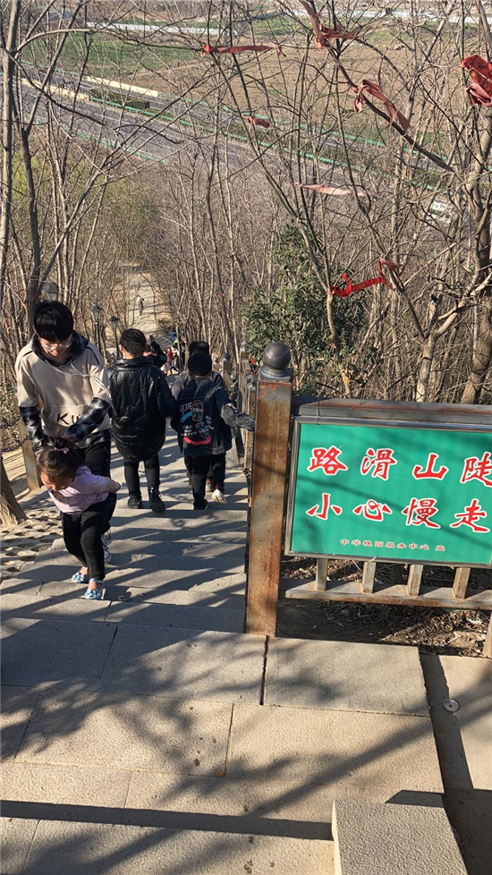 在槐香湖邊,年輕人三五結(jié)伴登上游艇,“坐船能到湖那邊的小島,島上也有槐樹,拍照肯定特別漂亮?!狈掂l(xiāng)大學(xué)生把七星島上的景色留在了自己的相機(jī)里。七星島與槐香湖相連的橋上,人潮擁擠,有的人席地而坐,觀賞著橋上的風(fēng)景。當(dāng)問道在外市工作的王先生游玩感受時(shí),他回答到:“年后上班沒時(shí)間鍛煉身體,今天我把全家人帶來登山,呼吸一下新鮮空氣。”③5