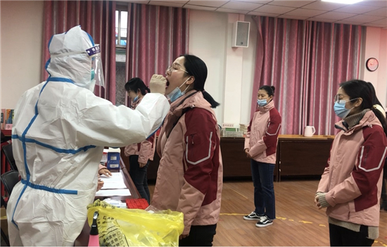 為保證市直幼兒園順利開(kāi)學(xué),按照市教體局統(tǒng)一安排部署,近日,周口市婦女兒童醫(yī)院核酸檢測(cè)組對(duì)市直幼兒園全體教職工百余人順利進(jìn)行了新冠肺炎核酸檢測(cè),檢測(cè)結(jié)果在校老師全部健康,無(wú)異常。圖為市直幼兒園教職工在進(jìn)行新冠肺炎核酸檢測(cè)。