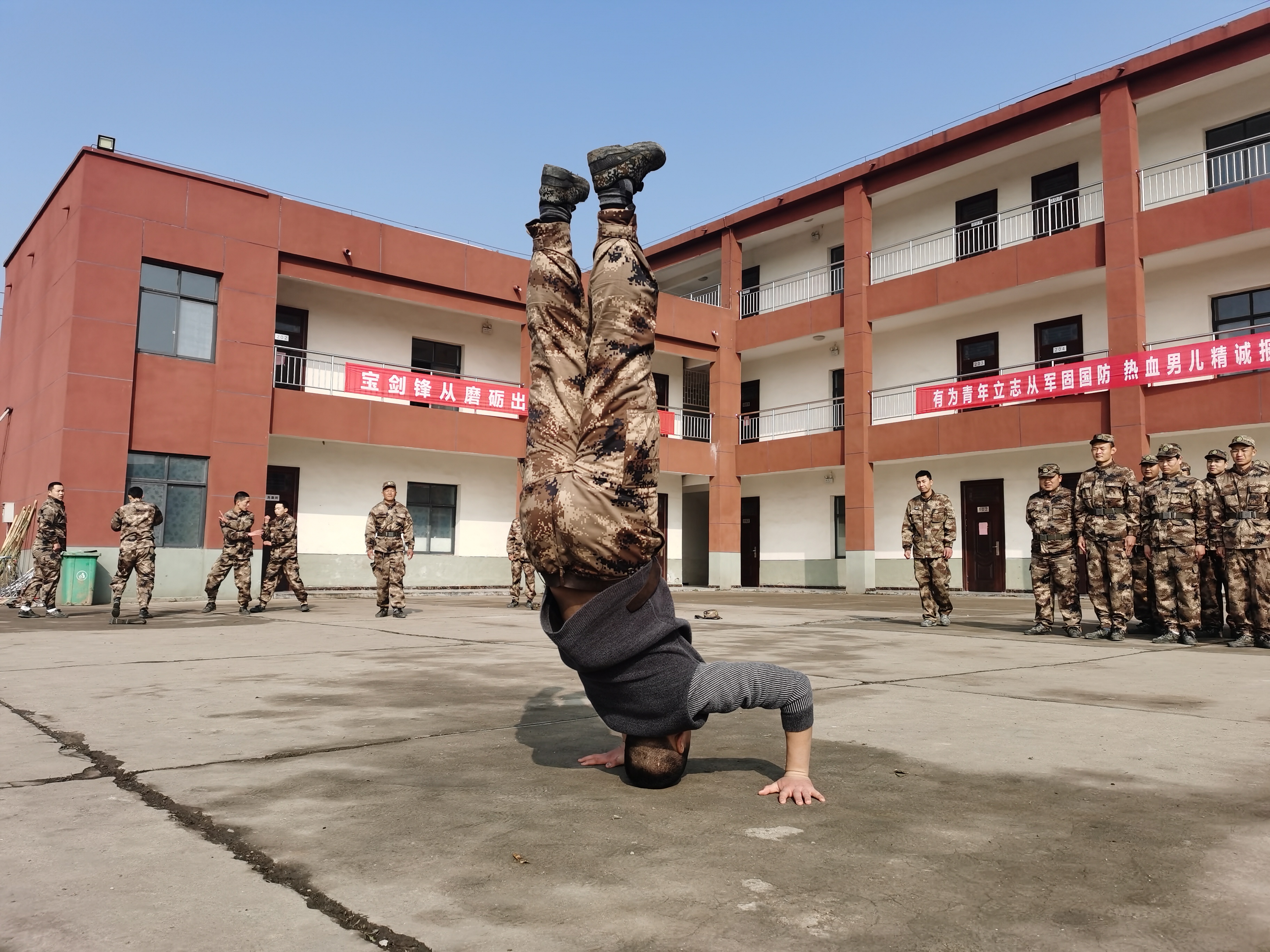 “報告首長,我叫趙三朋,畢業(yè)于武漢體育學(xué)院,武術(shù)套路、散打和兵器專業(yè)。”在戰(zhàn)友們的歡呼聲中,趙三朋主動請纓表演了一套傳統(tǒng)武術(shù)套路,只見他一招一式行云流水、虎虎生威 ,前后空翻嫻熟到位、收放自如,迎得戰(zhàn)友們陣陣喝彩聲,湯維政也禁不住連聲稱贊。