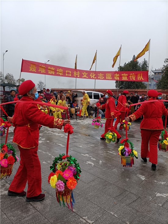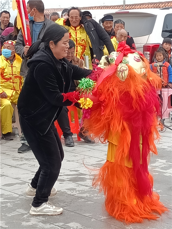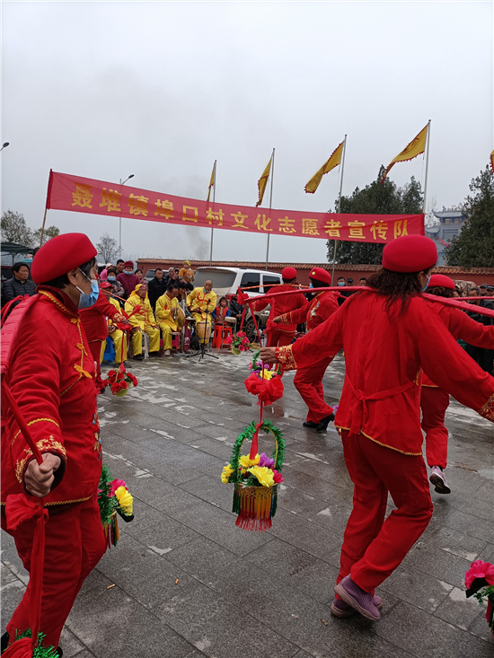 二月二,龍?zhí)ь^。3月14日,西華縣女?huà)z城門前的廣場(chǎng)上,寫(xiě)著“聶堆鎮(zhèn)埠口村文化志愿者宣傳隊(duì)”的紅色條幅前吸引了眾多游人。這些志愿者們用群眾喜聞樂(lè)見(jiàn)的舞獅、戲曲等傳統(tǒng)文藝節(jié)目,自編自演脫貧攻堅(jiān)給村民們帶來(lái)的新變化,宣傳黨的富民政策,鼓勵(lì)大家參與到鄉(xiāng)村振興工作中。