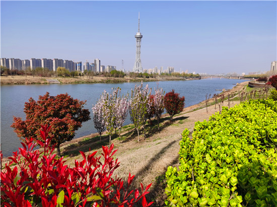 近日,在春花和藍天碧水映襯下,沙潁河兩岸桃花、海棠、石楠、櫻桃花競相綻放,沙潁河兩岸美如畫。