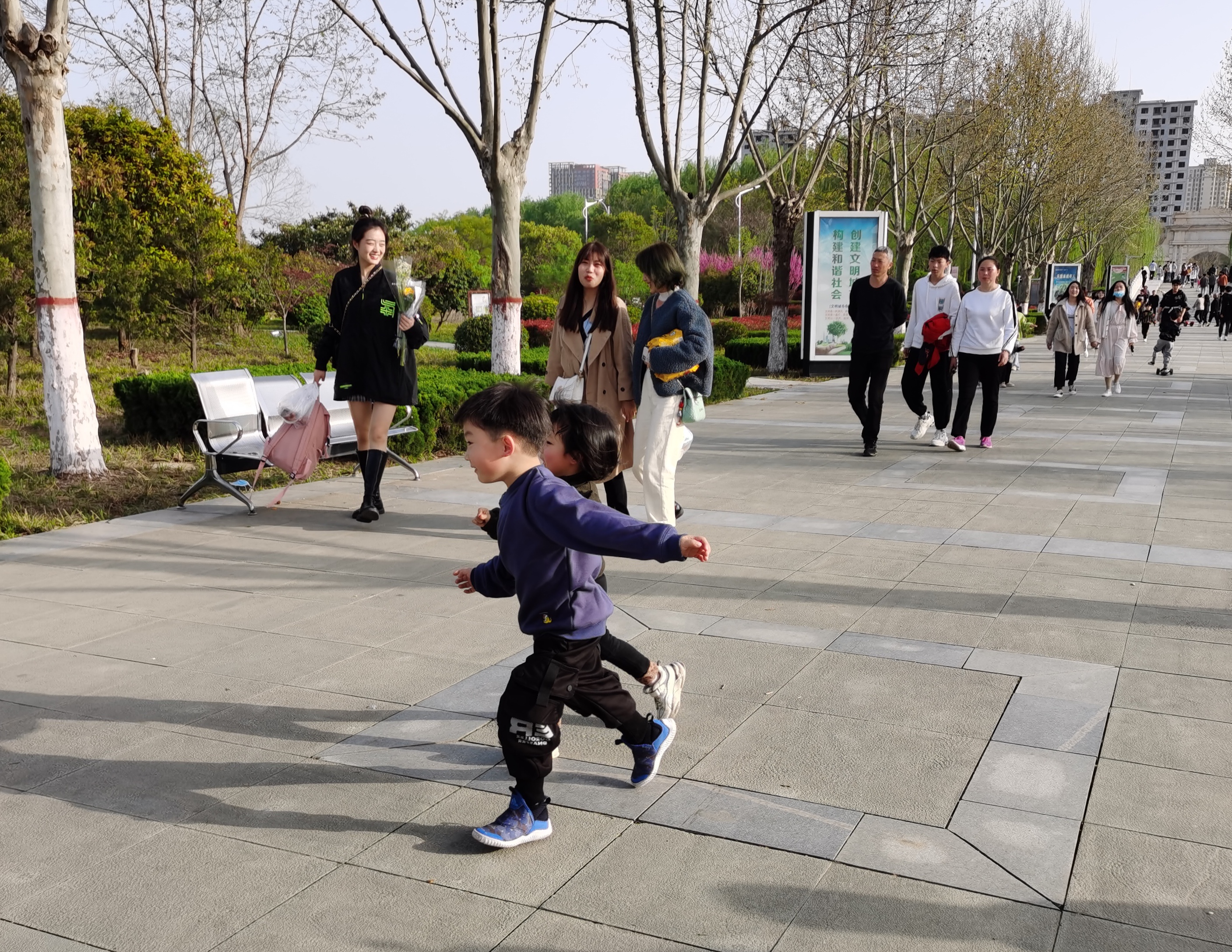 3月28日,周口市天氣晴好,氣溫也攀升至近期的最高溫度(25度),市民脫下厚重的冬衣 ,紛紛換上了輕薄的服裝。記者在公園和街頭看到,出行的市民中,不少時(shí)髦的年輕人換上了短褲和半袖。①5
