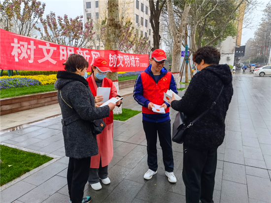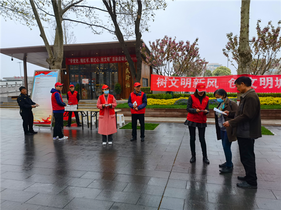在活動(dòng)現(xiàn)場(chǎng),城管志愿者頭戴小紅帽,身穿紅馬甲,向過(guò)往群眾發(fā)放講解《周口市文明行為促進(jìn)條例》,耐心解答市民提出的問(wèn)題,以實(shí)際行動(dòng)倡導(dǎo)文明、傳播文明,展現(xiàn)城管志愿者的積極風(fēng)采和良好的精神風(fēng)貌。②10